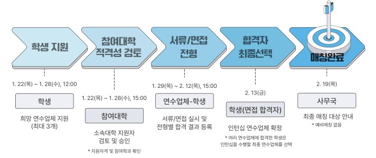 ※ 최종 참여자(기업매칭 완료자)의 경우 현장실습지원센터로 별도 신청을 하여야 학점연계 가능함.